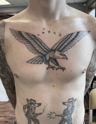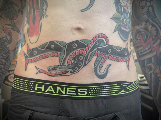 Hello Friends, My name is KC Cooper. I was born and raised in Central Oregon and have been tattooing here since 2012. I primarily enjoy tattooing classic flash designs but am also well versed in many styles of tattooing. My favorite things to tattoo are flowers, daggers, snakes, skulls and other ephemera from the early days of classic American tattooing.